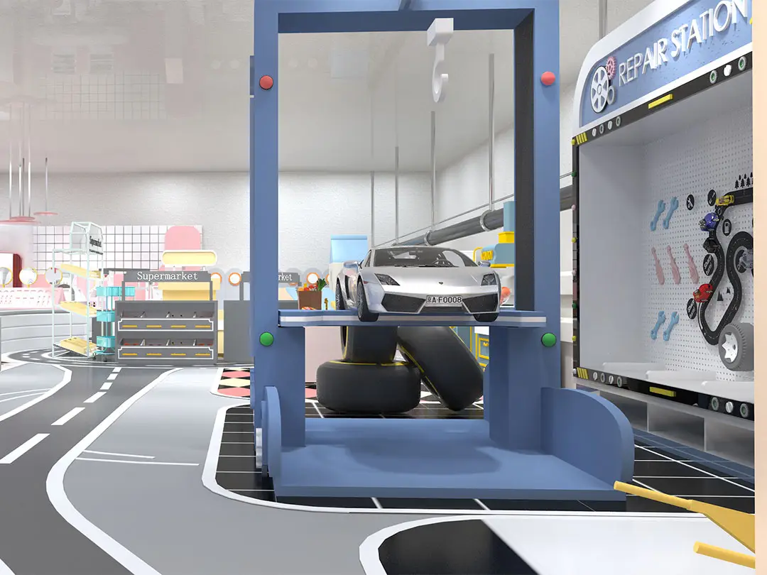 مناسبة للأطفال الذين تتراوح أعمارهم بين 2-5. There are all kinds of beautiful clothes in the cosplay dressing room. Children can dress up as their favorite cartoon characters or play professional roles in simulated Supermarkets, Princess House, Kitchen , Hospital ,Construction Zone , Fire Department , Gas Stations, Post Offices, Police Stations, وأكثر. Immersive props are used to stimulate children’s talent for performance. Allows children to fully play their imagination!