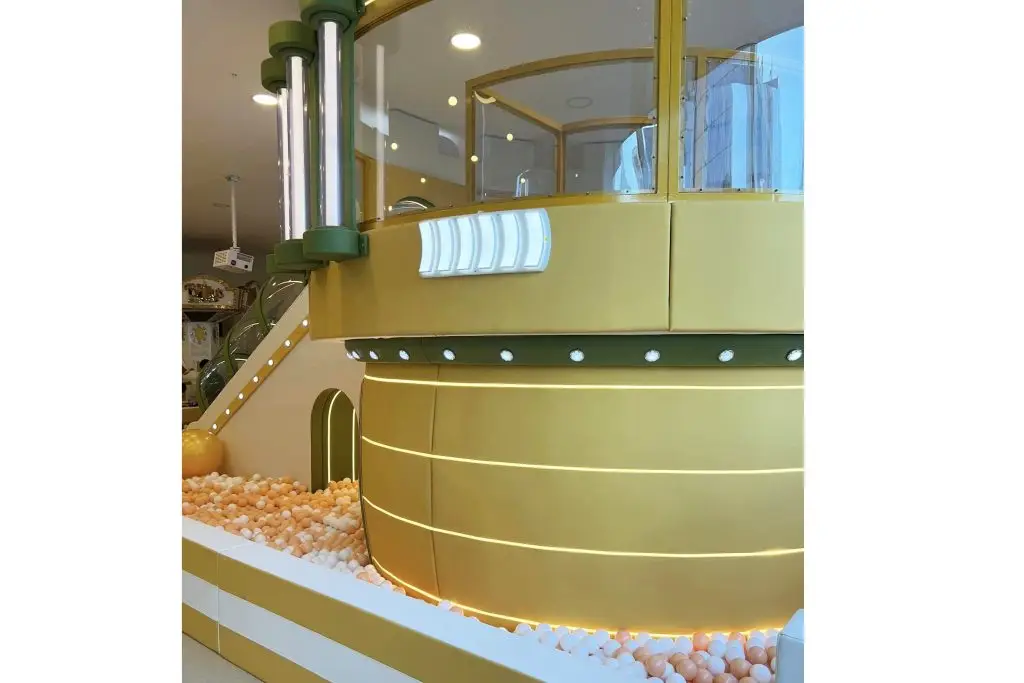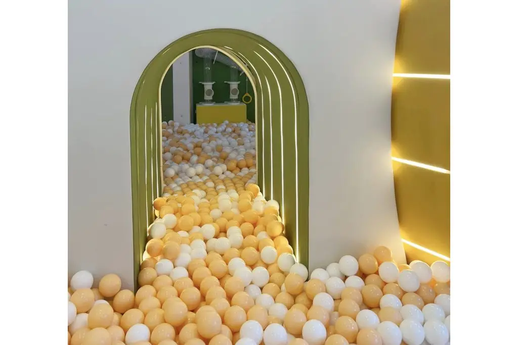 The Billy’s Kids Cafe Indoor Playground uses yellow as the main color and supplements white and green as the secondary colors. In addition, this indoor playground is also designed in the shape of a castle and incorporates some elements related to the design theme, such as city walls, red flags, etc. The application of these factors will make the castle adventure theme more obvious and attract children’s attention so that children can have an immersive and happy amusement experience.